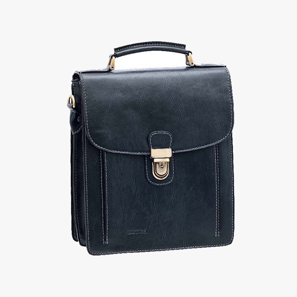 Όρθιος ανδρικός χαρτοφύλακας BARTUGGI από δερματίνη με 2 εσωτερικές θέσεις και μια επιπλέον που κλείνει με φερμουάρ,θήκες για στυλό, κάρτες κλπ. Επιπλέον, διαθέτει μια τσέπη μπροστά κάτω από το καπάκι, καθώς και μια εξωτερική τσέπη στο πίσω μερος. Διαστάσεις: 26 x 24 x 13 εκ.