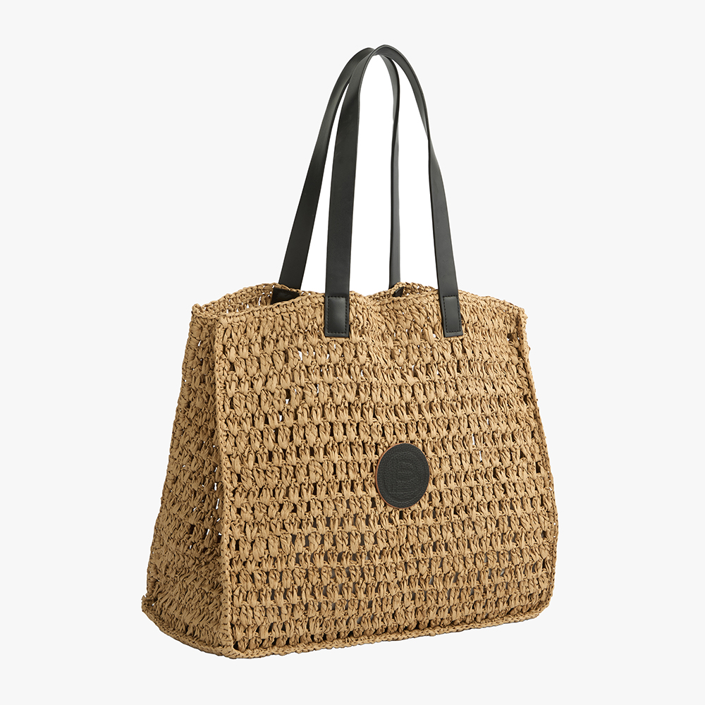Μια ξεχωριστή ψάθινη τσάντα Bartuggi με εντυπωσιακό, πρωτότυπο σχήμα και κομψές καφέ λεπτομέρειες που αναδεικνύουν τον ιδιαίτερο χαρακτήρα της. Στο εσωτερικό διαθέτει ένα τσαντάκι που σουρώνει, προσφέροντας πρακτικότητα και ασφάλεια για τα προσωπικά αντικείμενα. Ιδανική για casual εμφανίσεις, βόλτες ή καλοκαιρινές εξορμήσεις, συνδυάζει μοναδικό design με λειτουργικότητα και στιλ.