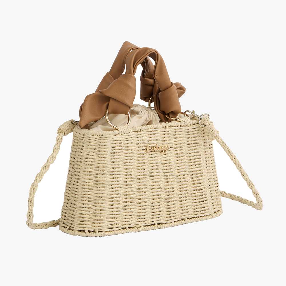 Ένα εντυπωσιακό ψάθινο τσαντάκι Bartuggi που ξεχωρίζει για το ιδιαίτερο design του και το κομψό καλοκαιρινό του ύφος. Το κλείσιμο που σουρώνει προσφέρει μοναδική εμφάνιση και ασφάλεια, ενώ τα ξεχωριστά χεράκια του χαρίζουν φυσική, χειροποίητη αισθητική. Διαθέτει επίσης επιπλέον ιμάντα για να φοριέται άνετα στον ώμο, προσφέροντας δύο διαφορετικούς τρόπους χρήσης. Ένα κομψό και πρακτικό αξεσουάρ που ολοκληρώνει κάθε καλοκαιρινό outfit με boho, elegant χαρακτήρα.