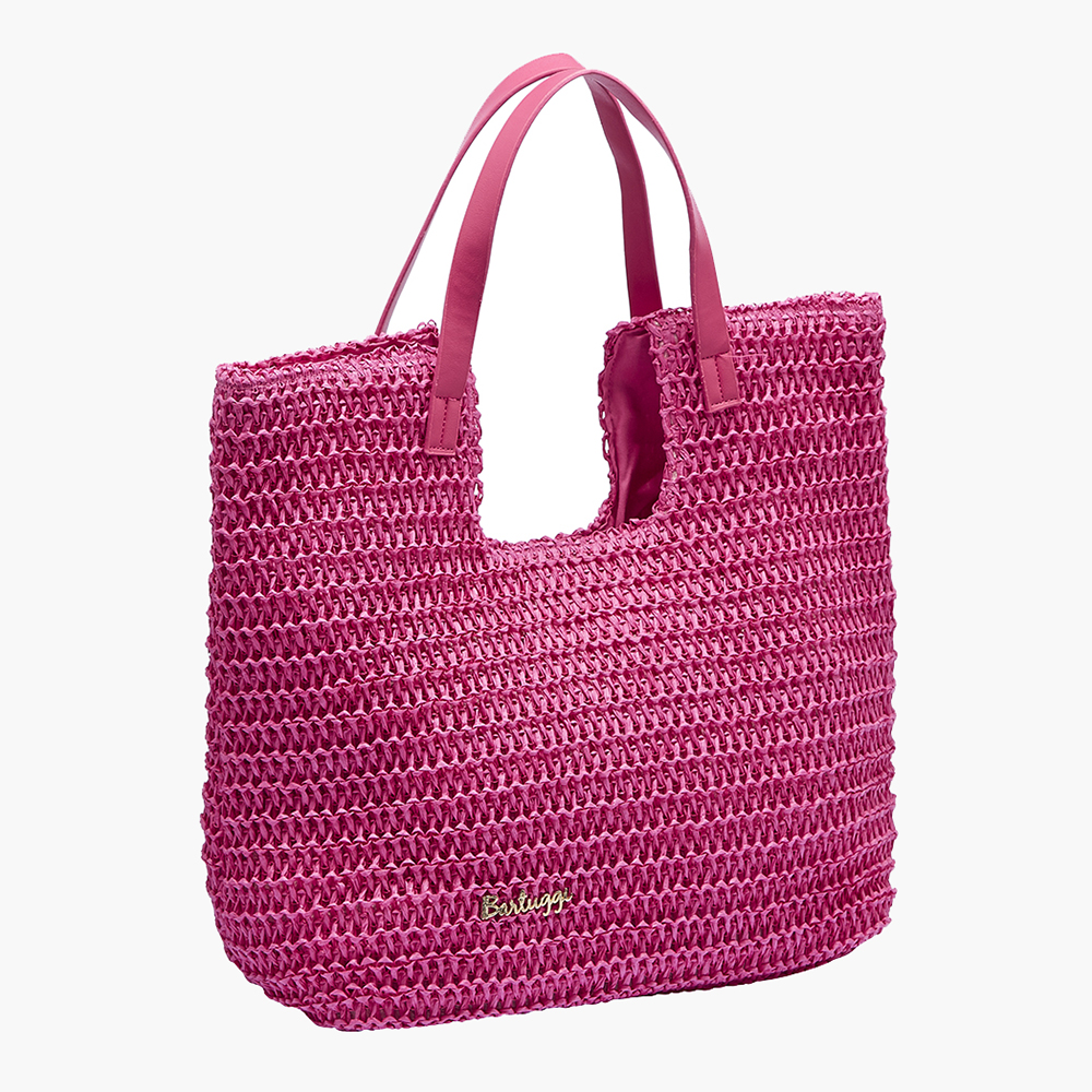 Ψάθινη τσάντα ώμου Bartuggi, ευρύχωρη σε μαλακό πρωτότυπο σχέδιο και σε εκπληκτικούς χρωματισμούς. Κλείνει με σουστά, διαθέτει χεράκια από δερματίνη και 2 εσωτερικά τσεπάκια, το ένα από τα οποία κλείνει με φερμουάρ για μεγαλύτερη ασφάλεια.