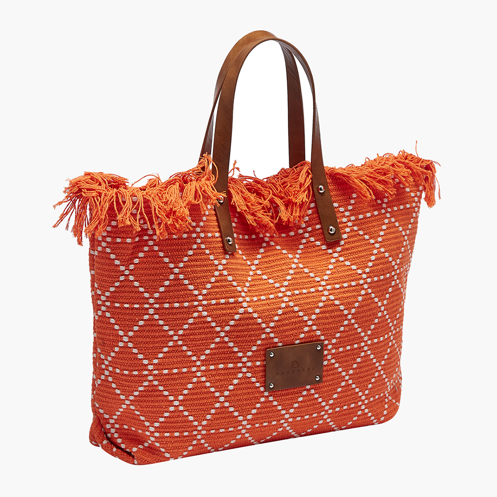 Striking Bartuggi bag made of exquisite fabric in unique shades, which can be used as a beach bag or for your everyday outfits, adding an interesting touch. It features leather details and a zipper closure.