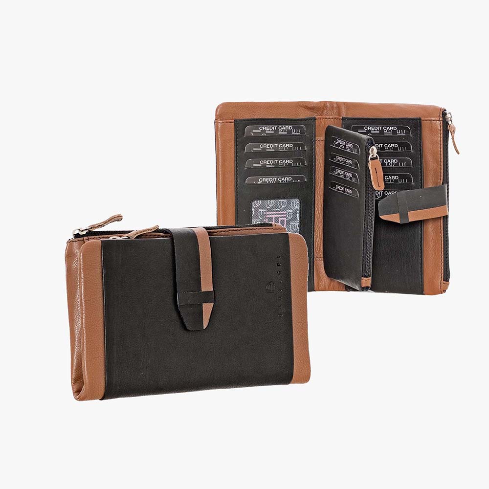 Γυναικείο δερμάτινο πορτοφόλι BARTUGGI σε έντονα χρώματα από μαλακό δέρμα, με 2 τσέπες κερμάτων με φερμουάρ.
