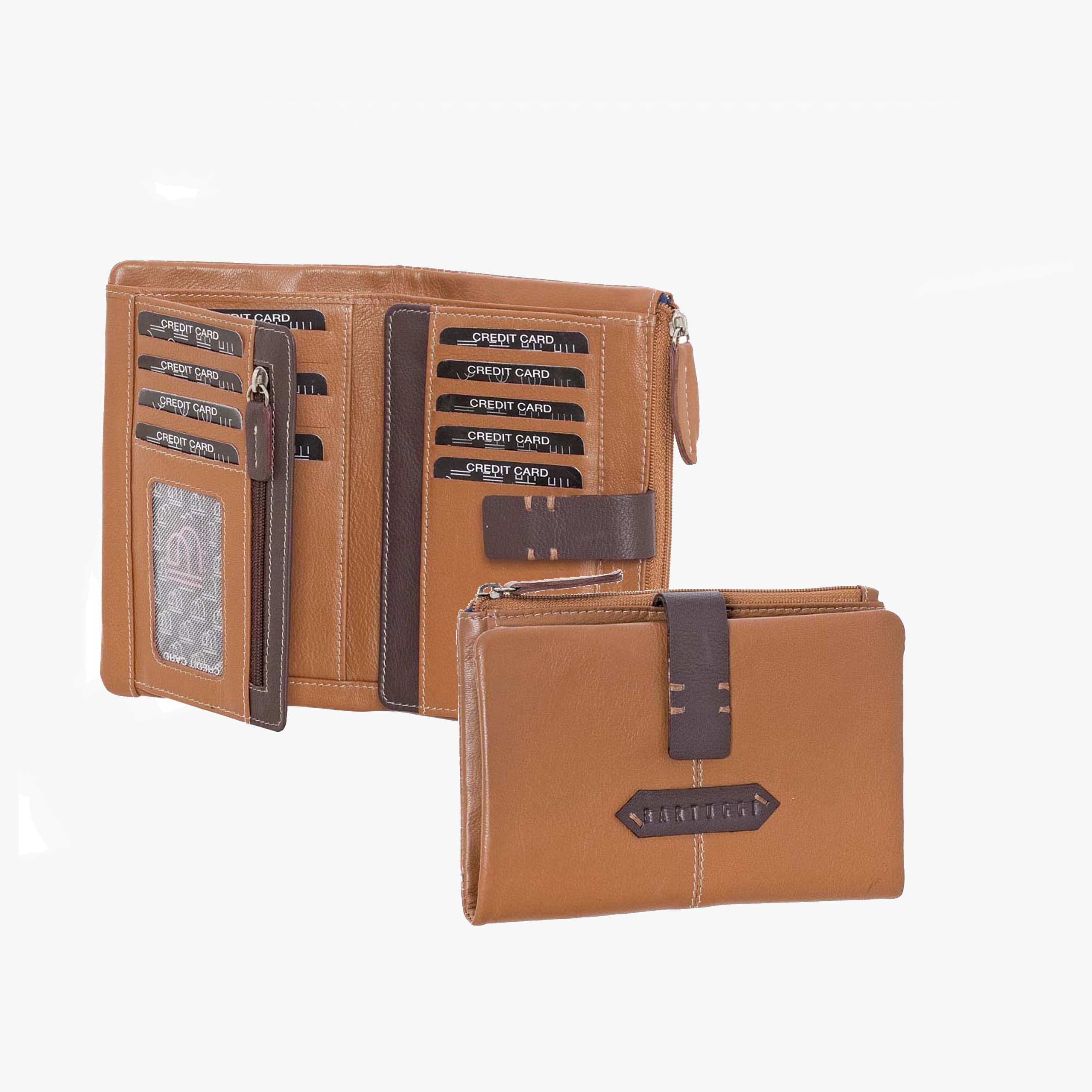 Γυναικείο δερμάτινο πορτοφόλι BARTUGGI σε έντονα χρώματα από μαλακό δέρμα, με εξωτερική τσέπη κερμάτων με φερμουάρ.