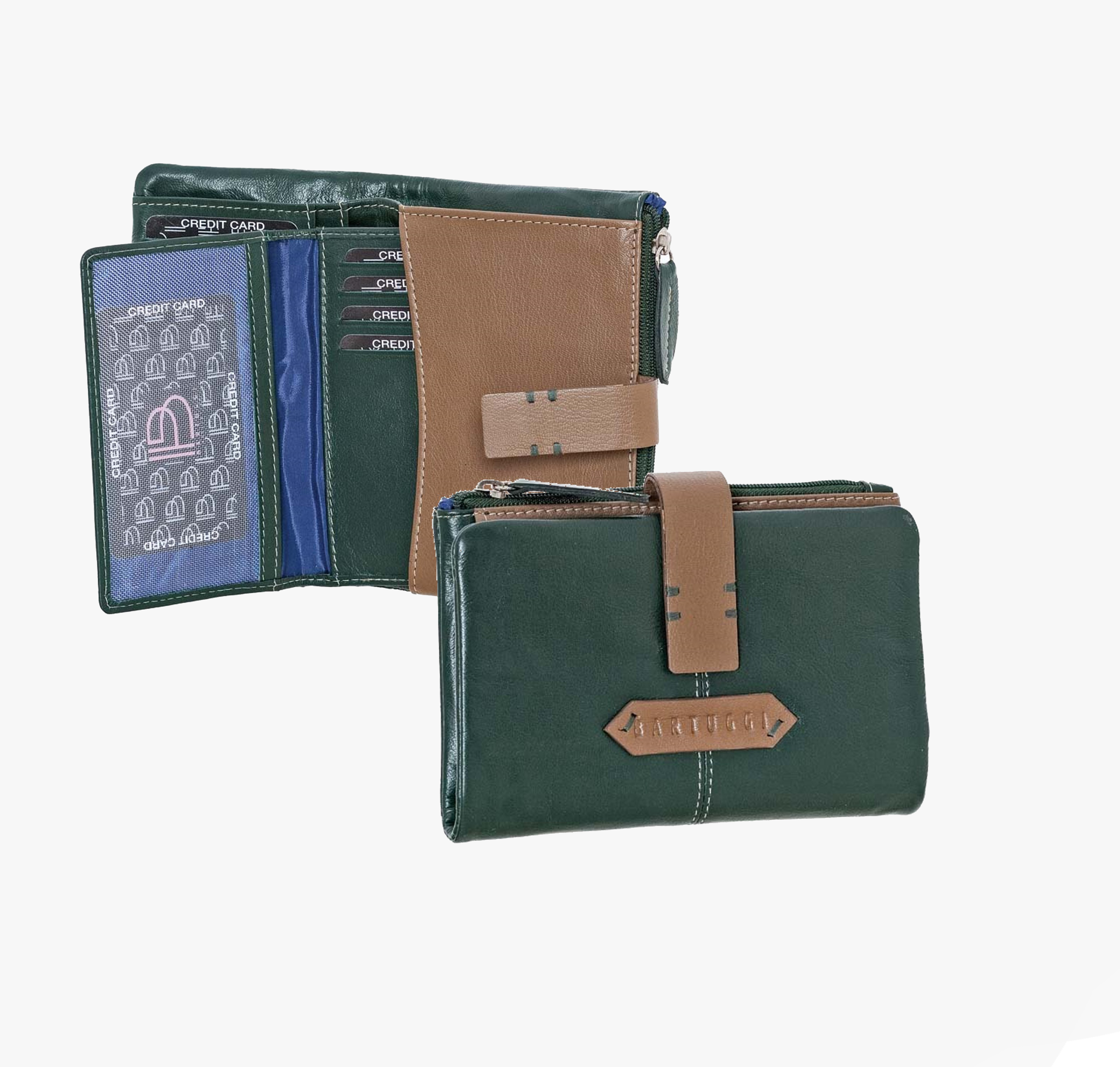 Γυναικείο δερμάτινο πορτοφόλι BARTUGGI σε έντονα χρώματα από μαλακό δέρμα, με εξωτερική τσέπη κερμάτων με φερμουάρ.