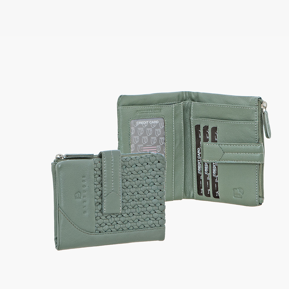 Το στυλ συναντά την πρακτικότητα με αυτό το γυναικείο δερμάτινο πορτοφόλι της BARTUGGI, που είναι διακοσμημένο με πλεκτό υλικό. Με μια θέση για χαρτονομίσματα, εξωτερική τσέπη για κέρματα με φερμουάρ, 3 θέσεις για κάρτες, και 4 επιπλέον θέσεις για ταυτότητα, δίπλωμα, φωτογραφίες κλπ., αυτό το πορτοφόλι προσφέρει όχι μόνο ιδανική οργάνωση αλλά και μια πινελιά κομψότητας. Επιλέξτε αυτό το δερμάτινο πορτοφόλι για ένα στιλάτο και λειτουργικό αξεσουάρ που συμπληρώνει κάθε πτυχή της καθημερινής σας ζωής. Διαθέτει τέλος RFID αντικλεπτική προστασία και είναι τοποθετημένο σε κουτάκι δώρου.