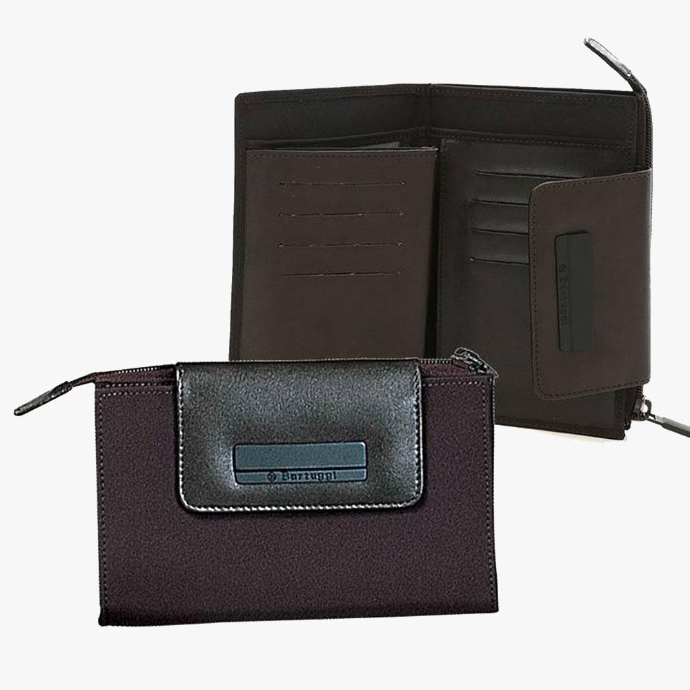 Γυναικείο υφασμάτινο πορτοφόλι BARTUGGI με λεπτομέρειες από δερματίνη. Εσωτερικά διαθέτει 8 θέσεις για πιστωτικές κάρτες, 1 θέση για χαρτονομίσματα,3 θέσεις για ταυτότητα ή φωτογραφία,2 επιλέον θήκες και τσέπη κερμάτων στο πίσω μέρος που κλείνει με φερμουάρ.
