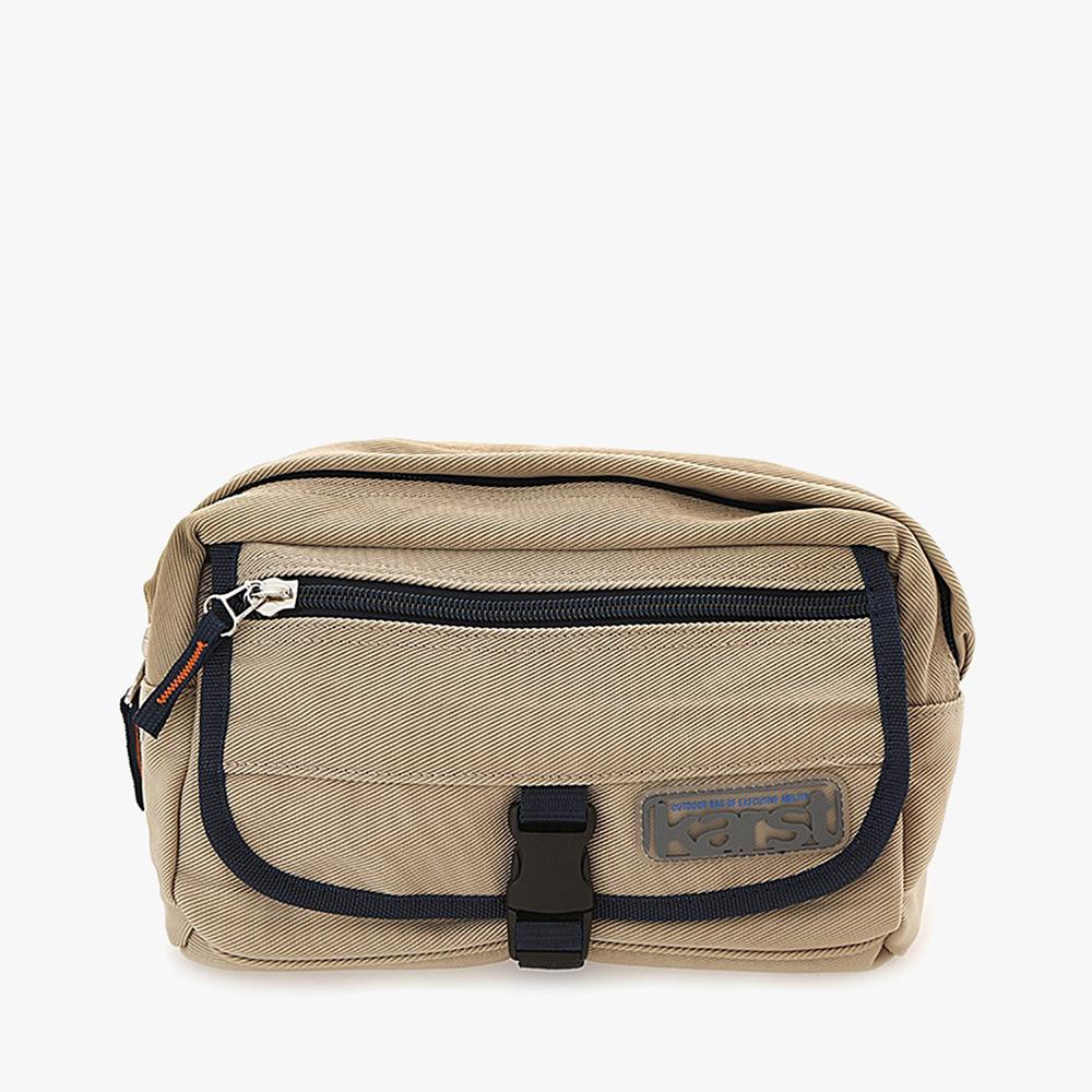 Ζωνάκι μέσης από αδιαβροχοποιημένο ύφασμα με 2 εξωτερικές τσέπες, εκ των οποίων η μια κάτω από το καπάκι με 2 θέσεις για στυλό, 3 θήκες για κάρτες, καθώς και ένα επιπλέον τσεπάκι με δίχτυ που κλείνει με φερμουάρ.
