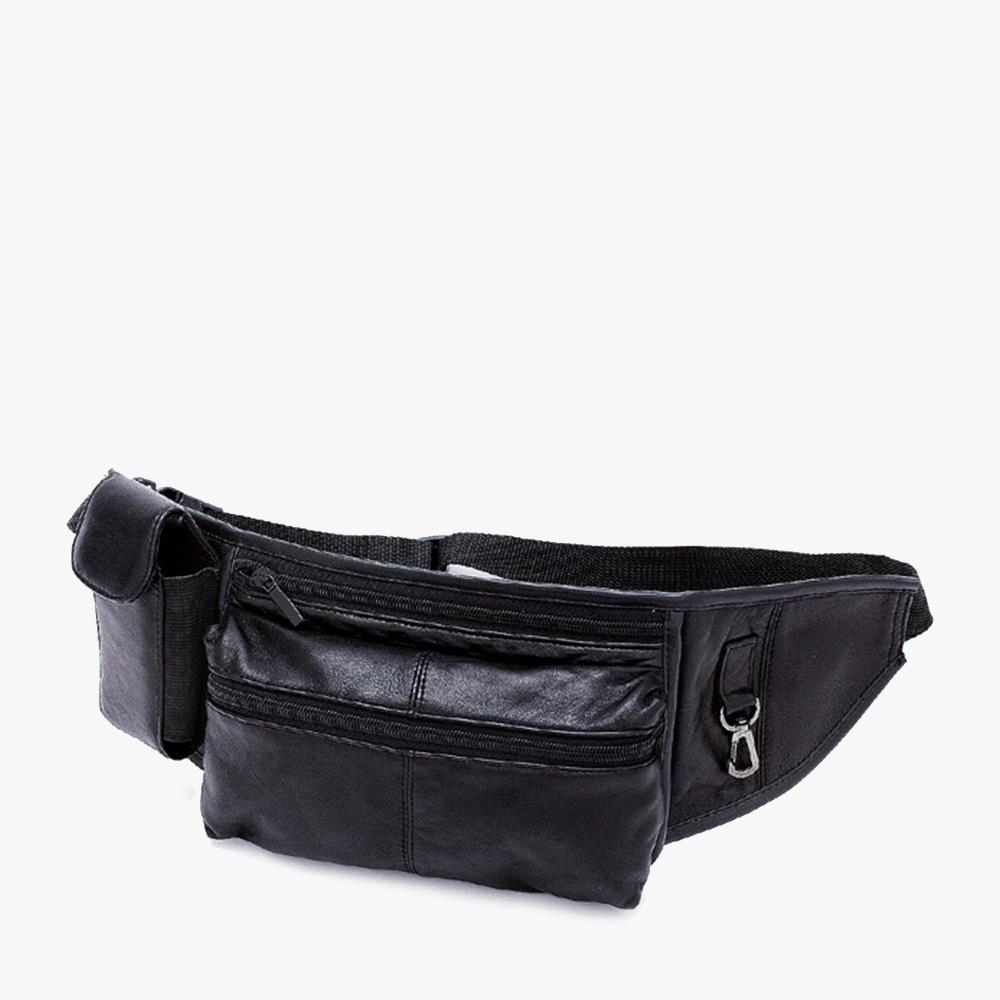 Δερμάτινο ζωνάκι μέσης με 2 θήκες που κλείνουν με φερμουάρ και μια θήκη για κινητό