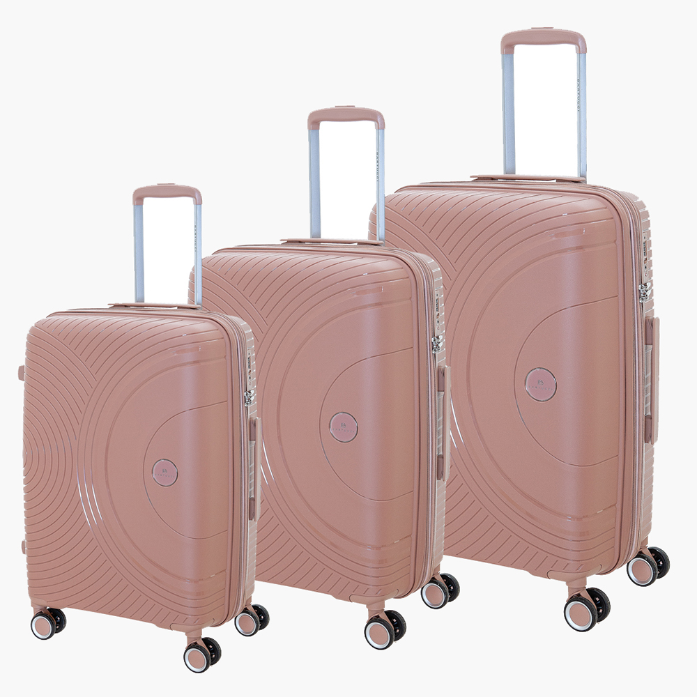 Το σετ ταξιδίου BARTUGGI 3 τεμαχίων, κατασκευασμένο από ελαφρύ και ανθεκτικό σκληρό υλικό (PP), είναι η ιδανική επιλογή για κοντινά ή μακρινά ταξίδια. Περιλαμβάνει βαλίτσες σε τρία μεγέθη (μεγάλη, μεσαία, μικρή), οι οποίες διαθέτουν εργονομικές λαβές στο επάνω και στο πλαϊνό μέρος για εύκολη μεταφορά, καθώς και 4 ρόδες που στρίβουν 360 μοίρες για να τις σύρετε χωρίς κόπο προς όλες τις κατευθύνσεις. Οι βαλίτσες ανοίγουν κυκλικά με φερμουάρ, προσφέροντας άνετη πρόσβαση στο εσωτερικό. Η μία εσωτερική πλευρά διαθέτει ρυθμιζόμενους ιμάντες χιαστί που συγκρατούν τα αντικείμενά σας σταθερά, ενώ η άλλη πλευρά κλείνει με κάλυμμα με φερμουάρ και περιλαμβάνει δύο επιπλέον τσέπες, μία εκ των οποίων με δίχτυ για μικροαντικείμενα. Επιπλέον, οι βαλίτσες διαθέτουν ενσωματωμένη κλειδαριά TSA με τριπλό συνδυασμό στο πλαϊνό μέρος, προσφέροντας μέγιστη ασφάλεια κατά τη διάρκεια των ταξιδιών σας. Το σουφλέ επέκτασης χώρου προσθέτει 4 επιπλέον εκατοστά χωρητικότητας, ενώ τα προστατευτικά τακουνάκια προσφέρουν επιπλέον αντοχή. Απολαύστε άνετα ταξίδια με αυτό το εξαιρετικό σετ βαλιτσών.