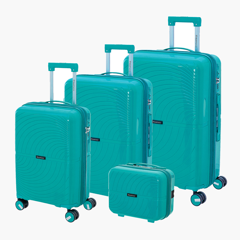 Σετ ταξιδίου BARTUGGI 4 τεμαχίων, κατασκευασμένο από ελαφρύ και ανθεκτικό σκληρό υλικό (PP), είναι ιδανικό για κοντινά ή μακρινά ταξίδια. Το σετ περιλαμβάνει βαλίτσες σε τρία μεγέθη (μεγάλη, μεσαία, μικρή) και ένα beauty case. Οι βαλίτσες διαθέτουν εργονομικές λαβές επάνω και στο πλαϊνό μέρος, ενώ το cabin case διαθέτει μόνο μία λαβή στο επάνω μέρος. Όλες οι βαλίτσες είναι εξοπλισμένες με 4 ρόδες που στρίβουν 360 μοίρες, επιτρέποντας εύκολη και άνετη μετακίνηση προς κάθε κατεύθυνση. Οι βαλίτσες ανοίγουν κυκλικά με φερμουάρ, διευκολύνοντας την πρόσβαση στο εσωτερικό τους. Η μία εσωτερική πλευρά διαθέτει προσαρμοζόμενους ιμάντες χιαστί για τη σταθερή συγκράτηση των αντικειμένων σας κατά τη διάρκεια του ταξιδιού, ενώ η άλλη πλευρά κλείνει με κάλυμμα με φερμουάρ, που περιλαμβάνει τσέπη με δίχτυ για τα μικροαντικείμενα σας. Επιπλέον, κάθε βαλίτσα διαθέτει ενσωματωμένη κλειδαριά TSA με τριπλό συνδυασμό στο πλαϊνό μέρος, καθώς και σουφλέ επέκτασης χώρου που προσθέτει 4 επιπλέον εκατοστά. Τα προστατευτικά τακουνάκια στις βαλίτσες (εκτός από το cabin case) ενισχύουν την ανθεκτικότητά τους. Απολαύστε το ταξίδι σας με αυτό το πλήρες και πρακτικό σετ βαλιτσών BARTUGGI.