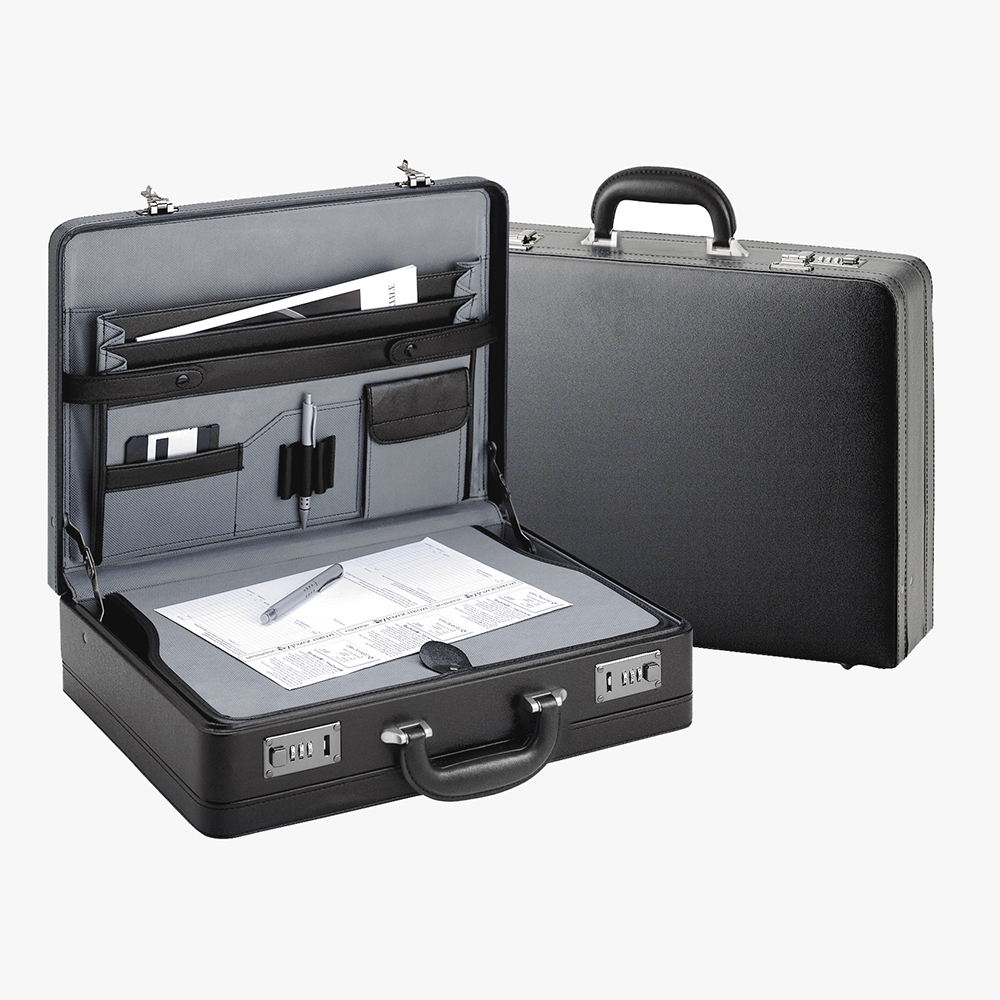 Σκληρός χαρτοφύλακας BARTUGGI με εργονομική λαβή χειρός, "πλούσια" εσωτερική διαρρύθμιση και σουφλέ επέκτασης χώρου. Διαχρονικό σχέδιο. Διαστάσεις: 45,5 x 33 x 11,5 εκ.