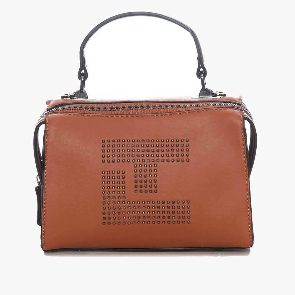Ted Lapidus εντυπωσιακή δίχρωμη τσάντα, διακοσμημένη με μεταλλικά στοιχεία που σχηματίζουν το λογότυπο