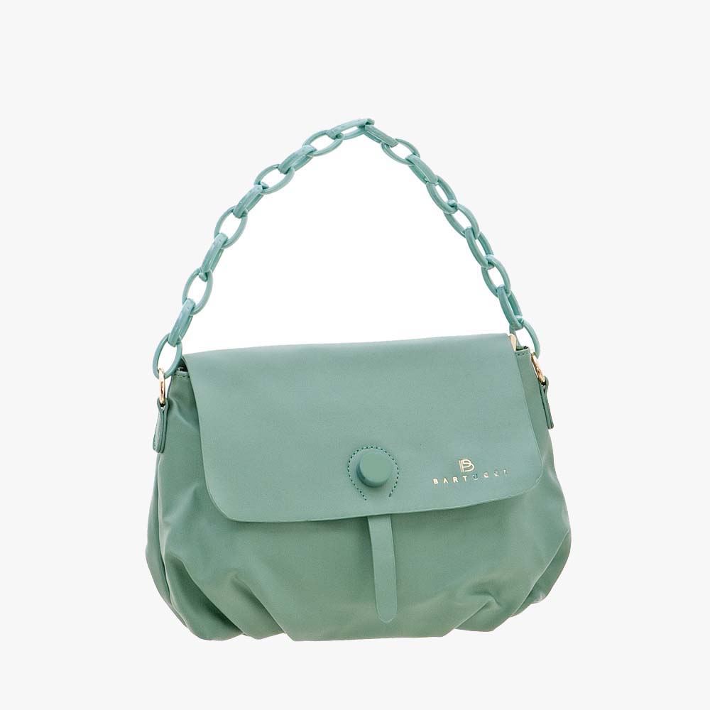 Μαλακή τσάντα ώμου BARTUGGI, σε συνδυασμό ζεστών αποχρώσεων. Διαθέτει καπάκι με ιδαίτερο κούμπωμα, αλυσίδα στην ίδια απόχρωση με την τσάντα, καθώς και έξτρα ιμάντα, ώστε να φοριέται χιαστί. Πρακτική τσάντα, με έναν ενιαίο χώρο, που διαθέτει 2 εσωτερικά τσεπάκι (το ένα με φερμουάρ), κατάλληλη για θηλυκές εμφανίσεις.