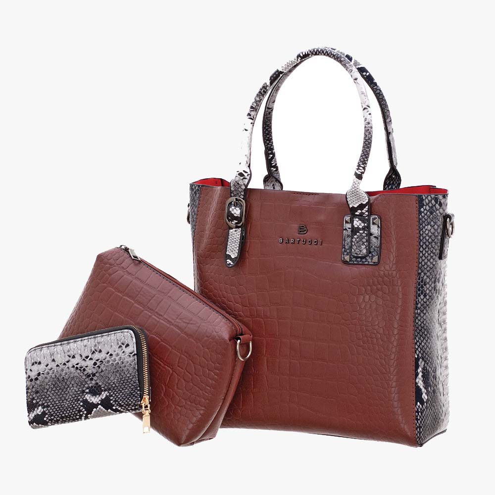 Διαχρονική τσάντα BARTUGGI με λεπτομέρειες από φίδι, εσωτερικό πορτοφολάκι και επιπλέον αποσπώμενο τσαντάκι που μπορεί να φορεθεί και μόνο τους ως ανεξάρτητο χιαστί. Διαθέτει μεγάλη χωρητικότητα και επιπλέον ιμάντα ώμου. Η ιδανική επιλογή για καθημερινές εμφανίσεις.