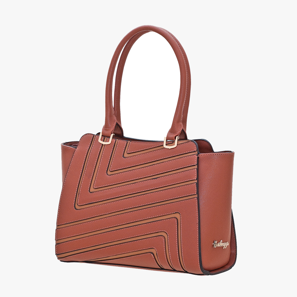 Κλασική, δίχρωμη τσάντα BARTUGGI με pattern, ιδανική για θηλυκές και επαγγελματικές εμφανίσεις. Διαθέτει εσωτερικά χώρισμα με φερμουάρ, εσωτερικά τσεπάκια -το ένα με φερμουάρ-, καθώς και τσέπη με φερμουάρ εξωτερικά στο πίσω μέρος