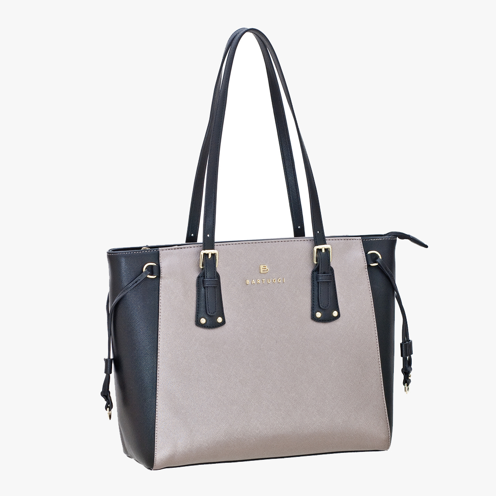 Κλασική, δίχρωμη τσάντα BARTUGGI με μεγάλη χωρητικότητα, ιδανική για θηλυκές και επαγγελματικές εμφανίσεις. Διαθέτει εσωτερικά χώρισμα με φερμουάρ, εσωτερικά τσεπάκια -το ένα με φερμουάρ-, καθώς και τσέπη με φερμουάρ εξωτερικά στο πίσω μέρος