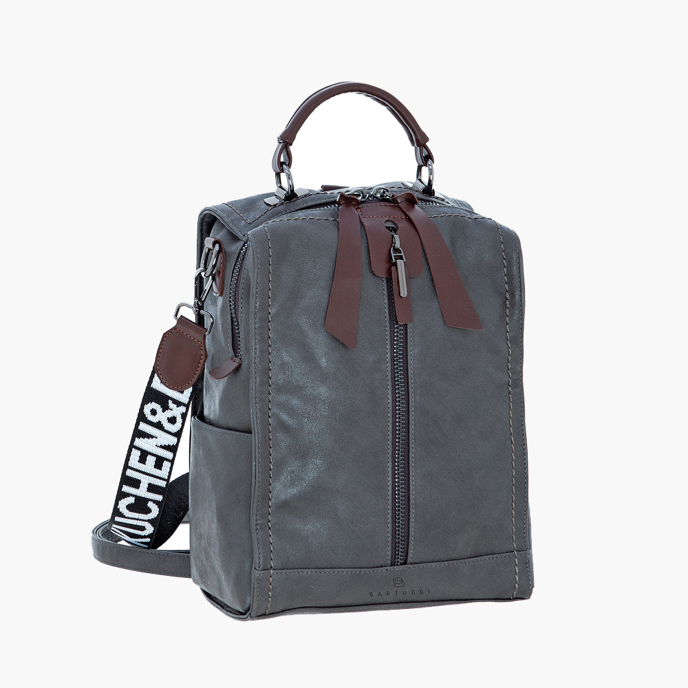 Αναδείξτε το στυλ σας με αυτό το σακίδιο πλάτης της BARTUGGI που ξεχωρίζει για το πρωτοποριακό υλικό που χρησιμοποιείται, καθώς και για τις μοντέρνες αποχρώσεις. Τα trims από καφέ χρώμα και το ιδιαίτερο σχέδιο το καθιστούν μοναδικό. Μπορεί να μετατραπεί εύκολα σε τσάντα ώμου για μεγαλύτερη ευελιξία. Διαθέτει 2 εσωτερικά τσεπάκια, με ένα από αυτά να κλείνει με φερμουάρ, προσφέροντας ασφαλή αποθήκευση. Στο μπροστινό μέρος υπάρχει επιπλέον τσεπάκι που κλείνει με φερμουάρ, ενώ στα πλαϊνά υπάρχουν 2 τσεπάκια που κλείνουν με σούστα, προσφέροντας επιπλέον αποθηκευτικό χώρο. Επιπλέον, διαθέτει έναν εξτρά ιμάντα ώμου για περισσότερες επιλογές και άνεση.