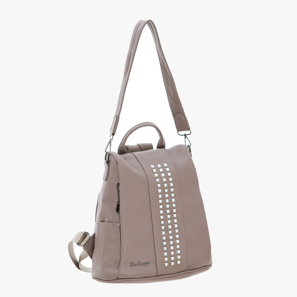 Γυναικείο αντικλεπτικό σακίδιο BARTUGGI με διακοσμητικά τρουκς. Διαθέτει 2 εσωτερικά τσεπάκια, το ένα με φερμουάρ και εξωτερικά 2 πλαϊνά μικρά τσεπάκια, καθώς και 2 μεγαλύτερα που κλείνουν με φερμουάρ. Διαθέτει τέλος, επιπλέον ιμάντα ώμου