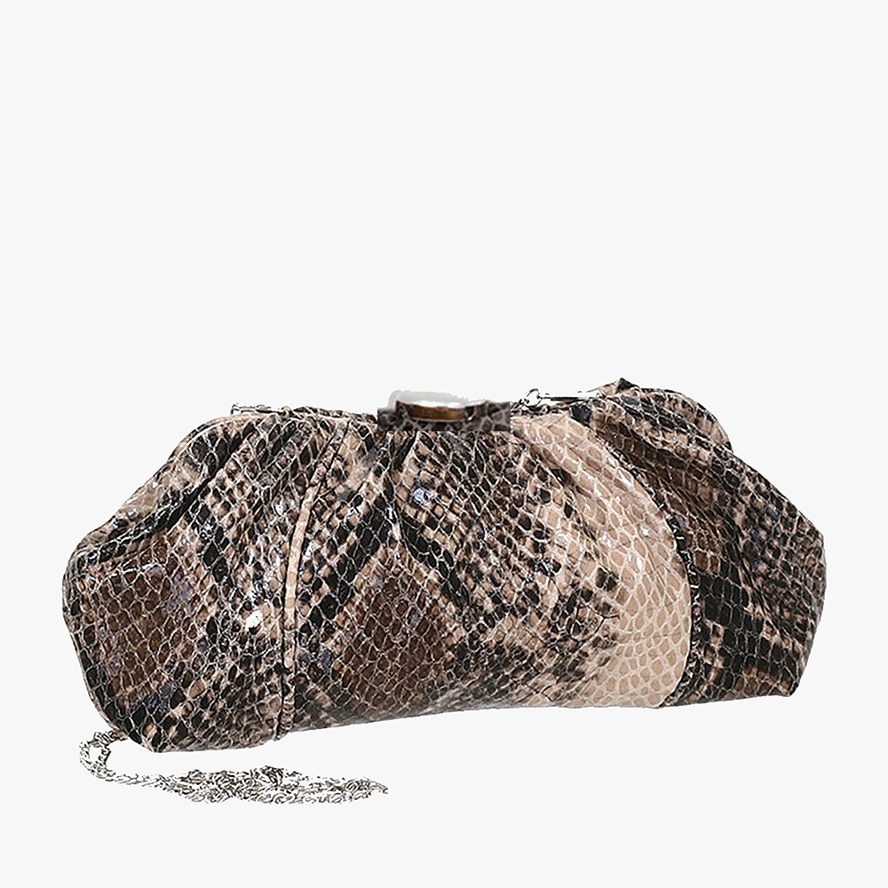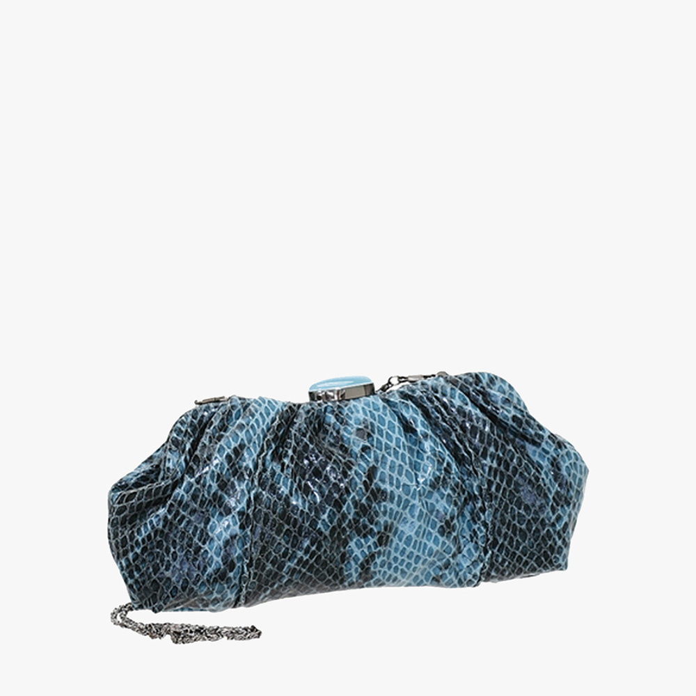 Φακελάκι BARTUGGI με pattern φιδιού σε πολλά χρώματα. Διαθέτει αλυσιδίτσα για να φοριέται και στον ώμο και διακοσμείται με κούμπωμα πέτρα.